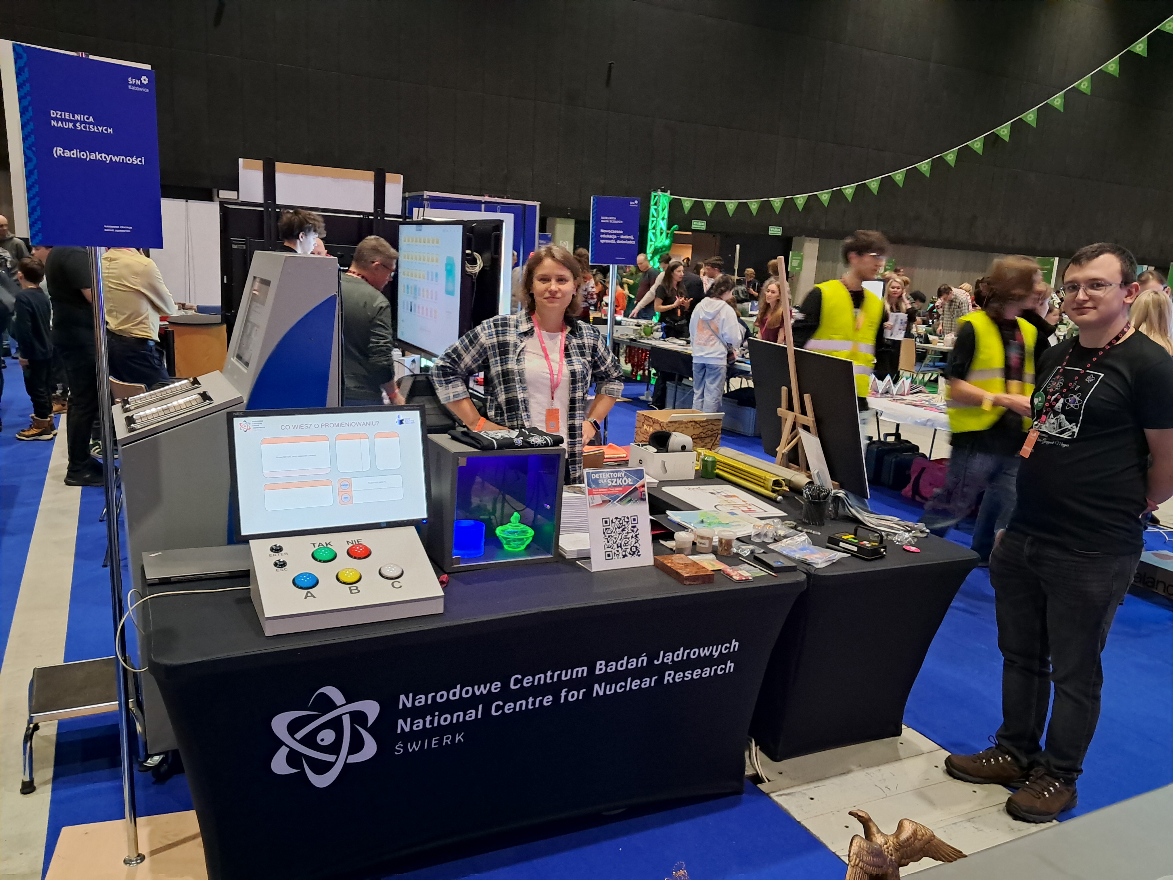 Na stoisku Instytutu można było wysłuchać opowieści o promieniotwórczości i reaktorach jądrowych. Goście mieli szansę zbadać radioaktywność swojego ciała na prawdziwej bramce radiometrycznej, ułożyć schemat elektrowni jądrowej, a nawet odbyć wirtualną wizytę w reaktorze MARIA! Nasi pracownicy zorganizowali również warsztaty z wykorzystaniem radiometrów. Dzięki temu, uczestnicy 9. ŚFN mogli wcielić się w rolę naukowców i własnoręcznie zbadać własności promieniowania jonizującego.