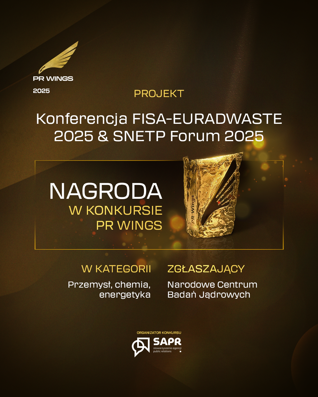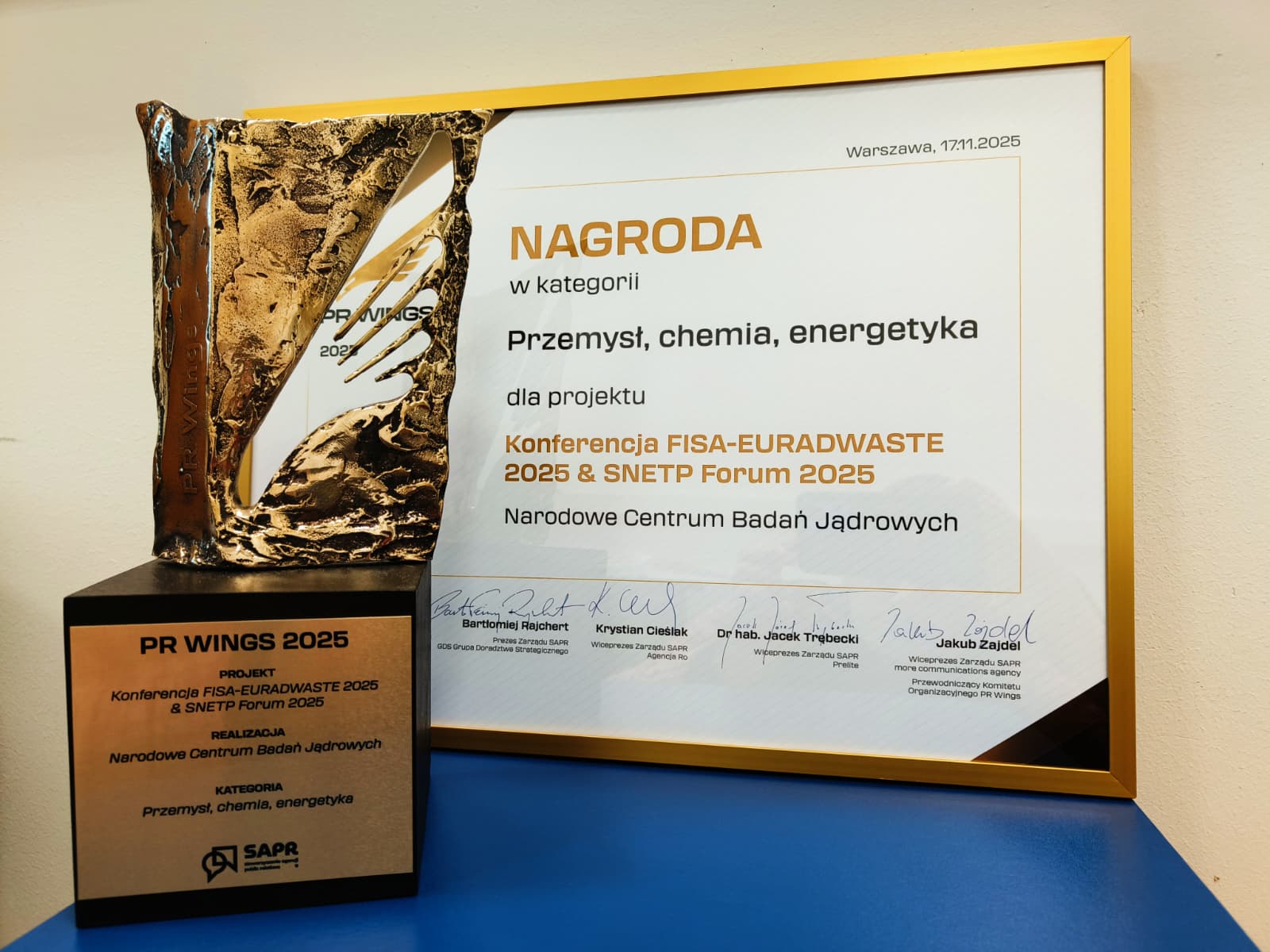 On 17 November, the grand finale of the 5th edition of the PR Wings competition took place. The National Centre for Nuclear Research won an award in the ‘Industry, Chemistry and Energy’ category for its campaign created for the FISA-EURADWASTE 2025 & SNETP Forum conference.